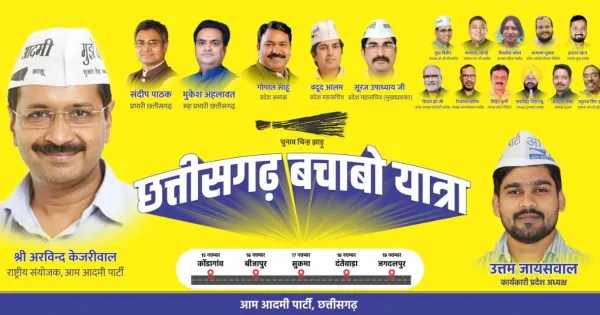 रायपुर।आम आदमी पार्टी द्वारा छत्तीसगढ़ में आज से नए कार्यकारी प्रदेशाध्यक्ष उत्तम जायसवाल के नेतृत्व में एक प्रदेशस्तरीय यात्रा का आयोजन किया जा रहा है। जिसका नाम छत्तीसगढ़ बचाबो यात्रा रखा गया है।