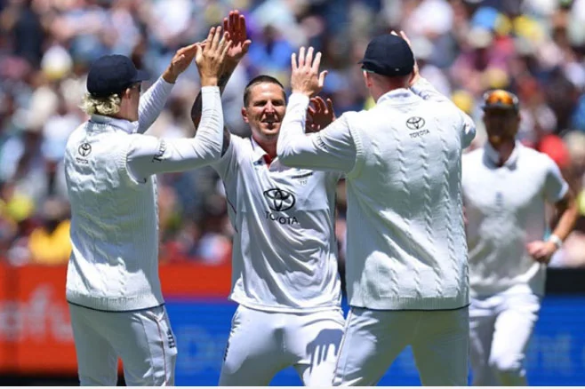 मेलबर्न। ऑस्ट्रेलिया की धरती पर टेस्ट मैच जीतने का इंग्लैंड का लंबा इंतजार समाप्त हो गया है। मेलबर्न में खेले गए एशेज सीरीज के चौथे टेस्ट में इंग्लैंड ने ऑस्ट्रेलिया को दूसरे ही दिन 4 विकेट से हरा दिया। जीत इंग्लैंड के आत्मसम्मान और आत्मविश्वास के लिए बेहद अहम है। इंग्लैंड को जीत के लिए 175 रन का लक्ष्य मिला था। जीत के लिए मिले 175 रन के लक्ष्य को हासिल करने उतरी इंग्लैंड को जैक क्रॉली और बेन डकेट ने 51 रन की मजबूत शुरुआत दी। डकेट 26 गेंद पर 34 रन बनाकर आउट हुए।