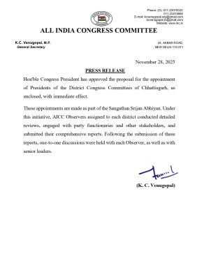 कांग्रेस जिलाध्यक्षों की सूची जारी