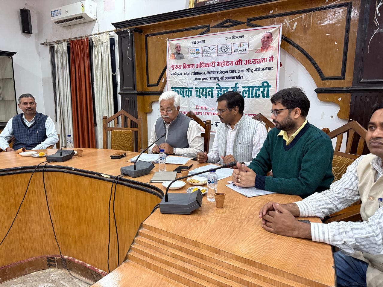संत कबीर नगर, 20 नवंबर, 2025 (सूचना विभाग)।* मुख्य विकास अधिकारी जयकेश त्रिपाठी की अध्यक्षता में कृषि विभाग के अंतर्गत संचालित योजना सबमिशन ऑन एग्रीकल्चर मैकेनाइजेशन योजना एवं प्रमोशन ऑफ़ एग्रीकल्चर मैकेनाइजेशन फ़ॉर क्रॉप रेसिड्यू मैनेजमेंट योजना अंतर्गत किसानों द्वारा ऑनलाइन बुकिंग यंत्रों के सापेक्ष ई-लॉटरी निकाली गई। जिसके अंतर्गत सभी विकास खंडों में कस्टम हायरिंग सेंटर, चेफ कटर, पावर टिलर, स्ट्रॉ रीपर एवं हाईटेक हब फॉर कस्टम हायरिंग सेंटर के अंतर्गत ई-लॉटरी के माध्यम से किसानों का चयन किया गया।