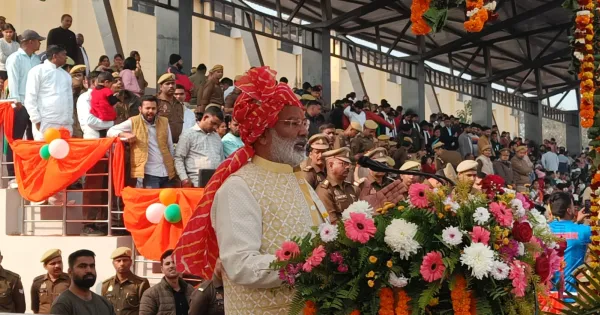 गोरखपुर। 77वें गणतंत्र दिवस के अवसर पर गोरखपुर पुलिस लाइन स्थित परेड ग्राउंड में भव्य, अनुशासित और गरिमामय समारोह का आयोजन किया गया। कार्यक्रम के मुख्य अतिथि उत्तर प्रदेश सरकार के जल शक्ति मंत्री स्वतंत्र देव सिंह रहे। देशभक्ति के वातावरण में आयोजित इस समारोह की शुरुआत प्रथम परेड कमांडर अरुण कुमार एस द्वारा मुख्य अतिथि को परेड की सलामी देने के साथ हुई।
