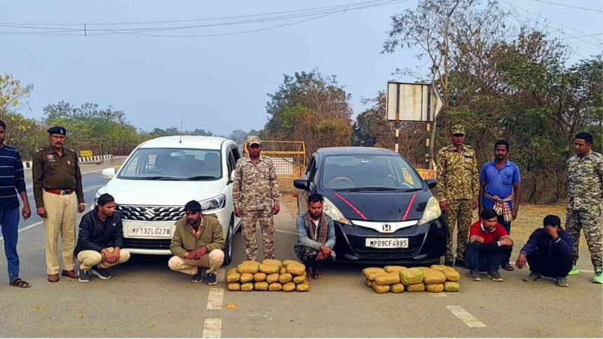 एंटी नारकोटिक्स टास्क फोर्स ने पहले प्रकरण में सिंघोड़ा थाना अंतर्गत 19 लाख रुपए मूल्य का 38 किग्रा गांजा जब्त किया. अवैध मादक पदार्थ के साथ दो कार को जब्त किया है. इन कारों के जरिए तस्कर फुलबनी, ओडिशा से झालवाड़ा, राजस्थान गांजा ले जा रहे थे. मामले में मध्यप्रदेश राजगढ़ जिला निवासी तीन आरोपियों जगदीश डांगी पिता इंदल सिंह (30 साल), कैलाश डांगी पिता देवीलाल डांगी (27 साल) और राजेश डांगी पिता नारायण डांगी (27 साल) को गिरफ्तार किया है.