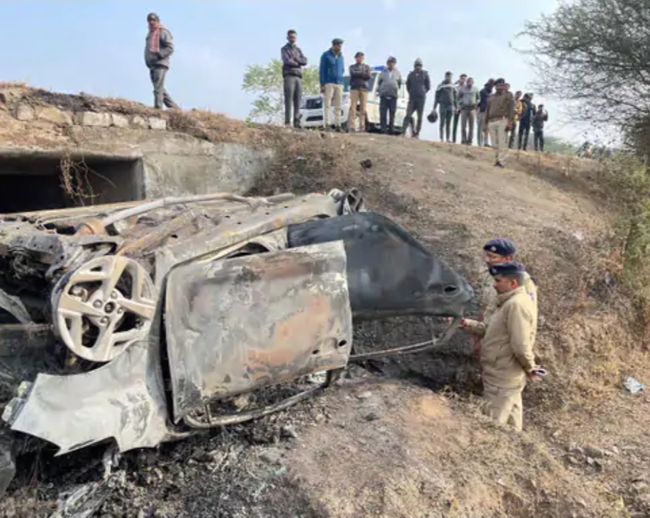 राजकोट (गुजरात)। गुजरात के राजकोट में आज तड़के गोंडल–आटकोट हाइवे पर मांडवा और बड़े दड़वा गांव के बीच एक कार आठ फीट ऊंचे पुल से पलटी खाकर नीचे गिर गई। इससे उसमें आग लग गई। कार सवार एक बच्चे समेत तीन लोगों को बाहर निकलने का मौका नहीं मिल सका। तीनों जिंदा जल गए।
