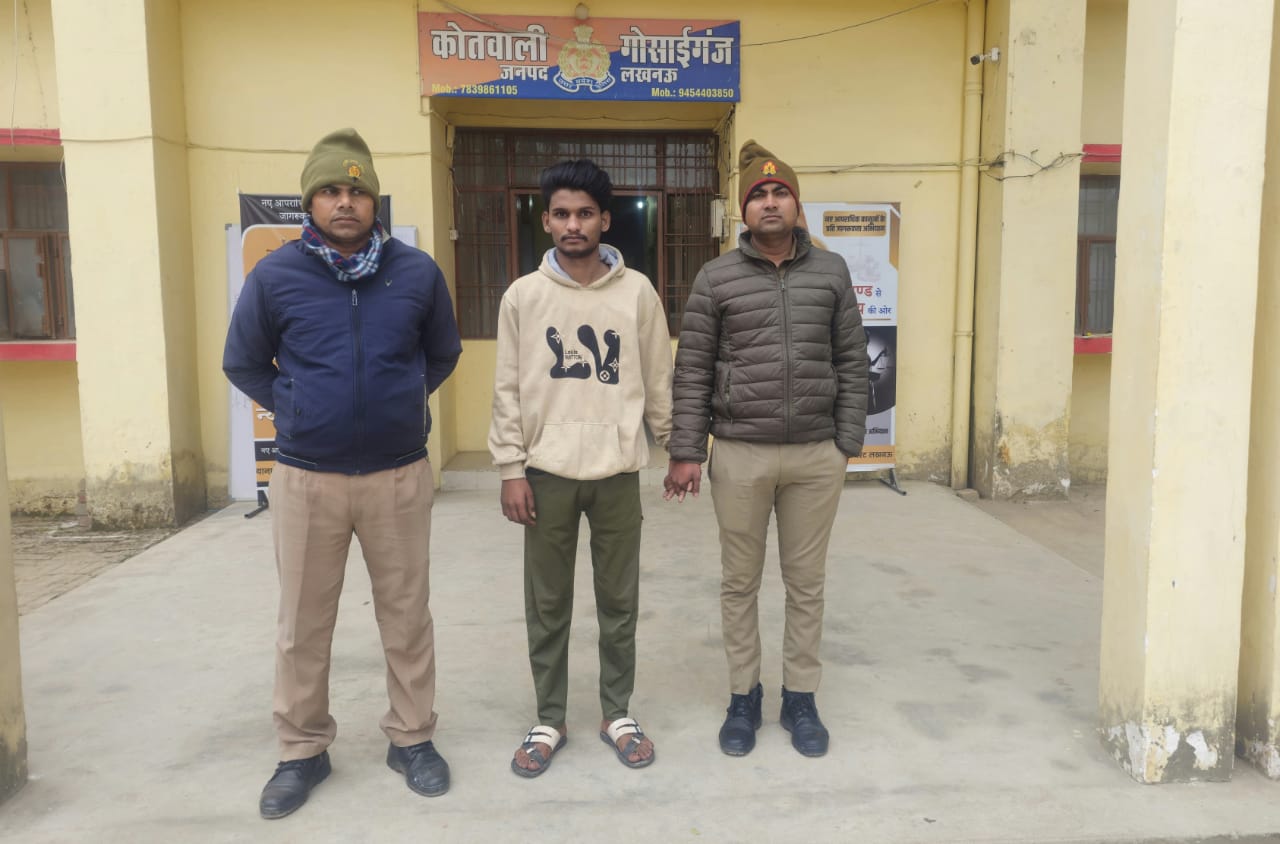 गोसाईगंज लखनऊ। गोसाईगंज थाना पुलिस ने लूट और छिनैती की घटनाओं में वांछित शातिर गैंग सदस्य आयुष शाक्य को गिरफ्तार कर लिया। अभियुक्त को उसके घर से पकड़ने के बाद आज न्यायालय में पेश कर जेल भेज दिया गया।