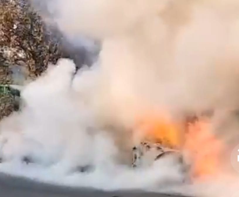 चलती हुई बीएमडब्ल्यू कार में लगी आग