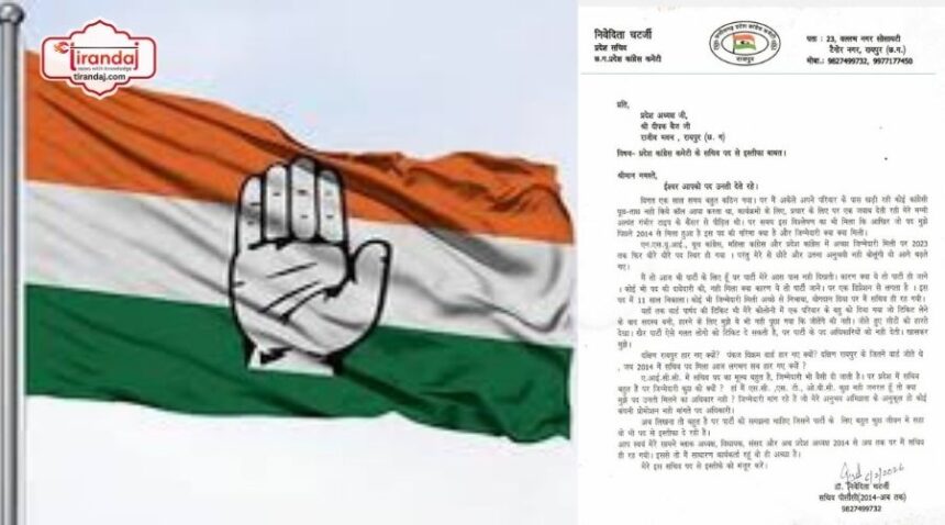 छत्तीसगढ़ कांग्रेस में फिर फूटा लेटर बम! PCC सचिव महिला नेत्री ने दिया इस्तीफा, प्रदेश अध्यक्ष दीपक बैज पर लगाए गंभीर आरोप – Tirandaj | Latest Chhattisgarh News