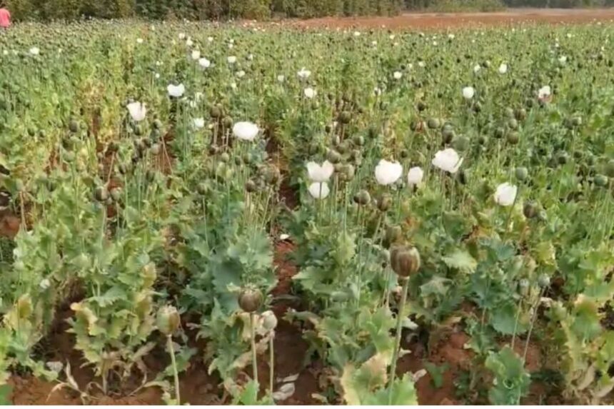 Opium Farming in CG: छत्तीसगढ़ में अवैध अफीम की खेती के मामले थमने का नाम नहीं ले रहे हैं। ताजा मामला रायगढ़ जिले के तमनार ब्लॉक के आमाघाट गांव से सामने आया है, जहां करीब डेढ़ एकड़ जमीन पर अफीम उगाई जा रही थी। स्थानीय लोगों की सूचना पर पुलिस टीम मौके पर पहुंची और पूरी खेती को नष्ट कर दिया। पुलिस जांच में पता चला कि यह खेती झारखंड के एक व्यक्ति के निर्देश पर कराई जा रही थी। आरोपी ने स्थानीय किसान से तरबूज-ककड़ी उगाने के बहाने खेत लिया था। पुलिस ने व्यक्ति को हिरासत में ले लिया है और पूछताछ जारी है।