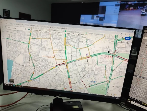 3. लाल (red) रंग- अत्यंत धीमी गति से चल रही है या ट्राफिक सिग्नल पर रुकी हुई है।