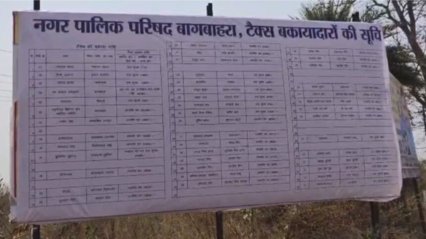 रवि विदानी, महासमुंद। CG News : जिले के बागबाहरा नगर पालिका ने संपत्ति कर और जल कर के बड़े बकायादारों की सूची शहर के प्रमुख स्थानों पर चस्पा कर दी है। इस कदम का उद्देश्य बकाया वसूली बढ़ाना और विकास कार्यों को गति देना है।