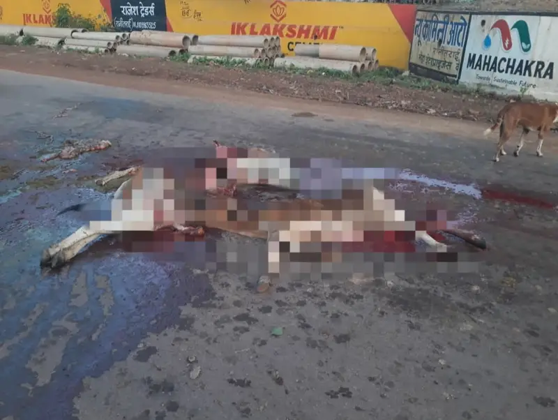 रानीतराई।पाटन विकासखंड के रानीतराई में अटल चौक से रानीतराई नव निर्मित कॉलेज भवन तक 4 नवंबर रात्रि को अज्ञात वाहन ने बेजुबान जानवरों को रौंद दिया है जिससे इस जानवरों की स्थल पर ही मौत हो गई है लगता है रात्रि में चलने वाले बड़े बड़े डंफर ट्रक वगैरह से जानबूझकर ये कृत्य किया गया है जो देखने के दृश्य से पता चल रहा है जिससे लोगों में आक्रोश है और अज्ञात आरोपी पर कार्यवाही की मांग किए है विश्व हिंदू परिषद, बजरंग दल के स्वयंसेवक ,भाजपा नेता ग्रामीण रानीतराई थाना प्रभारी से कार्यवाही की मांग किए है जिस पर रानीतराई थाना प्रभारी ने अज्ञात वाहन चालकों पर रिपोर्ट दर्ज कर कार्यवाही प्रारंभ कर दिया है