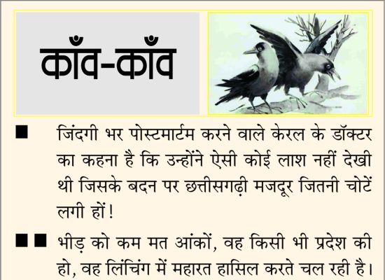 रायपुर दैनिक 'छत्तीसगढ़' का काँव-काँव, 23 दिसंबर 2025 Last updated: December 23, 2025 11:40 am NFA@0298 Share 0 Min Read SHARE दैनिक 'छत्तीसगढ़' का काँव-काँव, 23 दिसंबर 2025 Source link उमेश कुमार ने डीआरएम बिलासपुर का पद सम्हालने से मना किया पीएम मोदी ने कालचक्र अभिषेक समारोह का किया उद्घाटन, खुद को बताया सौभाग्यशाली जिला सहकारी केन्द्रीय बैंक दुर्ग के चौथी बार अध्यक्ष बने प्रीतपाल बेलचंदन का सेलूद शाखा के प्रतिनिधियों ने किया स्वागत सोलर रेडिएशन विमान की इलेक्ट्रॉनिक्स को कैसे प्रभावित करते हैं? कर्ज और मानसिक तनाव बना काल Sign Up For Daily NewsletterBe keep up! Get the latest breaking news delivered straight to your inbox.[mc4wp_form]By signing up, you agree to our Terms of Use and acknowledge the data practices in our Privacy Policy. You may unsubscribe at any time. Share This Article Facebook Copy Link Print Share Previous Article ट्रक की चपेट में आने से युवक की मौत Next Article नकली फूड आइटम बनाने और बेचने वाले गिरोह का पर्दाफाश, जानें क्या-क्या हुआ बरामद Leave a Comment Leave a Comment Leave a Reply Cancel replyYour email address will not be published. Required fields are marked *Comment * Name * Email * Website Save my name, email, and website in this browser for the next time I comment. Stay Connected235.3kFollowersLike69.1kFollowersFollow11.6kFollowersPin56.4kFollowersFollow136kSubscribersSubscribe4.4kFollowersFollow - Advertisement - Latest News योगी सरकार को कोर्ट से झटका, अखलाक मामले को बंद करने से इंकार रायपुर December 23, 2025 किसान और -गांव के बिना देश की प्रगति संभव नहीं : सांसद देश December 23, 2025 एक दूजे की हुई शिवसेना (यूबीटी) और मनसे रायपुर December 23, 2025 धान खरीदी में गड़बड़ी को लेकर धरना, पूर्व विधायक देवलाल दुग्गा चटाई बिछाकर बैठे – Tirandaj | Latest Chhattisgarh News देश December 23, 2025