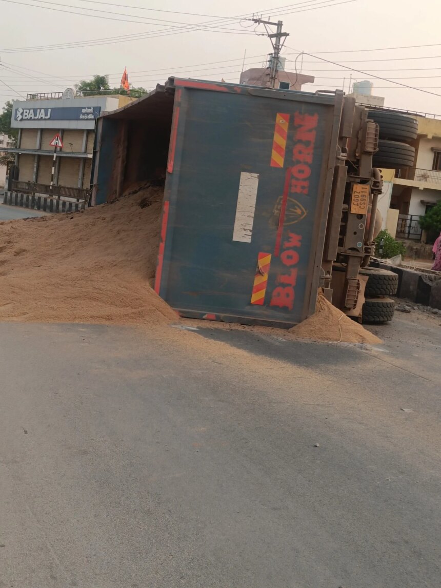 पाटन,,,नगर से गुजरने वाली मुख्य मार्ग में रेत से भरी एक ट्रक सुबह पलट गई कोई हताहत नहीं         नगर के लोग जब सुबह मार्निंग वॉक में निकले तो एक ट्रक पलटी हुई मिली ट्रक क्रमांक सी जी 07 9911 के चालक को प्राथमिक उपचार कराया गया चालक के अनुसार अचानक झपकी आई और गाड़ी डिवाइडर से टकरा कर दूसरी ओर पलट गई सड़क में रेत फैल जाने के कारण आवागमन अवरुद्ध हो गया था जिसे तुरंत ही हटा कर सड़क आवागमन के लिय सुलभ किया गया