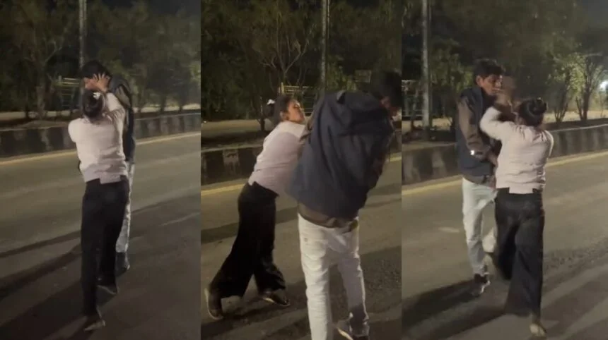 युवक लगातार युवती को समझाने और शांत करने की कोशिश करता रहा, लेकिन दोनों के बीच विवाद और बढ़ता चला गया। मौके पर मौजूद लोगों ने पूरे घटनाक्रम का वीडियो बना लिया, जो अब सोशल मीडिया पर वायरल हो रहा है।