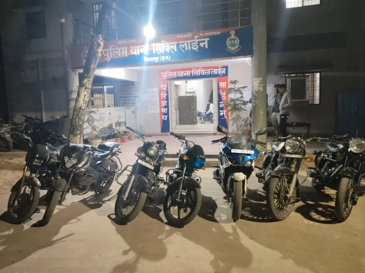 थाना सिविल लाईन क्षेत्र से 10 बुलेट मोटरसाइकिलों पर,