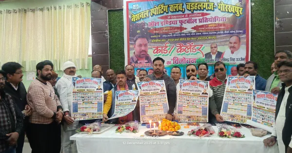 बड़हलगंज: नेशनल स्पोर्टिंग क्लब बड़हलगंज के तत्वावधान में आगामी 22 दिसंबर से नेशनल इण्टर कालेज के खेल के मैदान पर आयोजित होने जा रहे अखिल भारतीय फुटबाल मैच के कैलेंडर व कार्ड का विमोचन शुक्रवार को स्थानीय एक मैरेज हाल में किया गया।