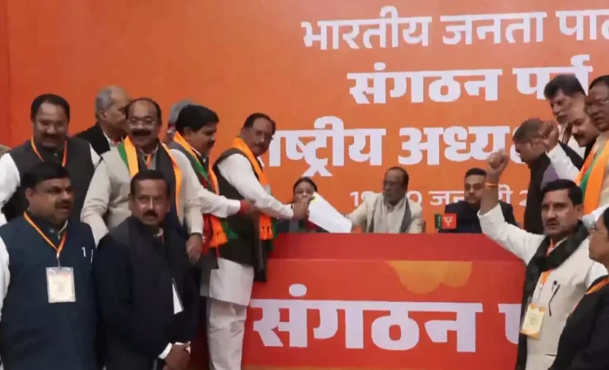 बीजेपी में ‘नबीन’ अध्याय शुरू हो रहा है. अगले 24 घंटों में अध्यक्ष पद के लिए सभी प्रक्रियाओं को पूरा कर लिया जाएगा. राष्ट्रीय अध्यक्ष पद के चुनाव प्रक्रिया में सबसे पहले नितिन नबीन अपना नामांकन दाखिल कर दिया है. इस दौरान अमित शाह, राजनाथ सिंह, जेपी नड्डा और गडकरी जैसे प्रमुख नेता मौजूद रहे. वहीं, सूत्रों का दावा है कि नितिन नबीन निर्विरोध अध्यक्ष चुने जाएंगे और वह कल अध्यक्ष पद की शपथ ग्रहण करेंगे.राज्यों के लगभग सभी मुख्यमंत्री, राज्यों के प्रदेश अध्यक्ष और राष्ट्रीय परिषद के सदस्य पहुंचे हैं. छत्तीसगढ़ के मुख्यमंत्री विष्णु देव साय और छत्तीसगढ़ भाजपा नेताओं ने अपना समर्थन पत्र जमा किया.