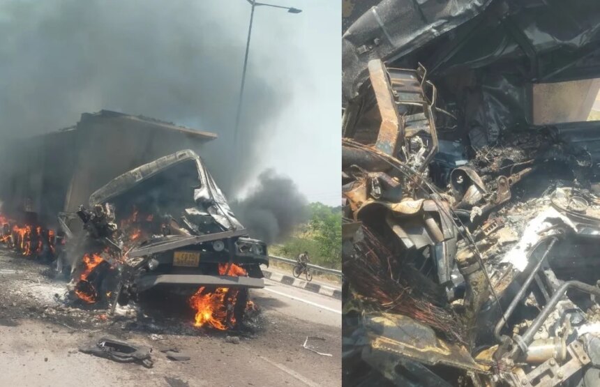 तखतपुर (रायपुर-कोरबा नेशनल हाईवे) में रविवार दोपहर एक दर्दनाक सड़क हादसा हो गया। समलपुरी ब्रिज के पास तेज रफ्तार ट्राला एक अज्ञात वाहन से टकरा गई, जिससे ट्राला बुरी तरह क्षतिग्रस्त हो गई और उसमें आग लग गई। हादसा इतना भीषण था कि ट्राला चालक की मौके पर ही जलकर मौत हो गई।