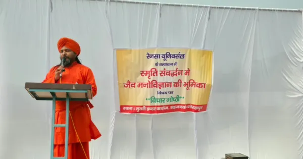 सहजनवां।रेनेसां यूनिवर्सल के तत्वावधान में मुरारी इंटर कॉलेज परिसर में “स्मृति संवर्धन में जैव मनोविज्ञान की भूमिका” विषय पर एक भव्य, व्यापक एवं अत्यंत ज्ञानवर्धक विचार गोष्ठी का आयोजन किया गया। इस कार्यक्रम में विद्यालय के हजारों छात्र-छात्राओं ने उत्साहपूर्वक सहभागिता की और विषय से जुड़ी महत्वपूर्ण जानकारियाँ प्राप्त कीं।