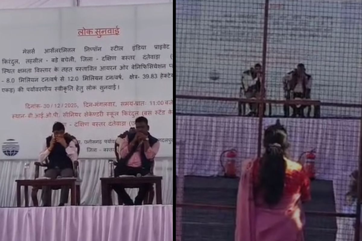 लोक सुनवाई में सिंहासन पर बैठे अधिकारी, सलाखों के पीछे खड़ी जनता ने कर दिया खुला विरोध