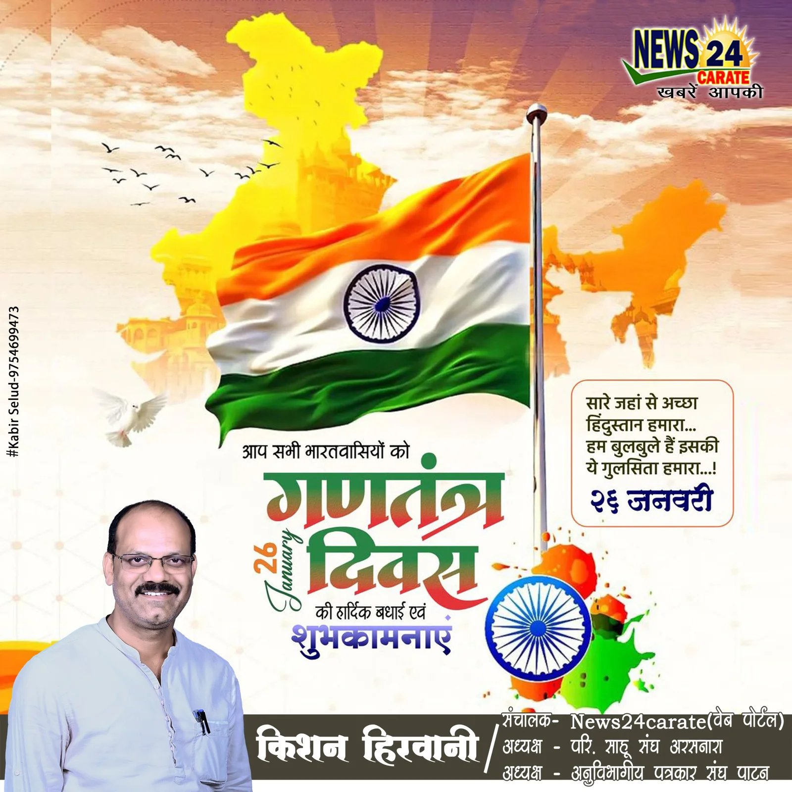 अपने संदेश में श्री हिरवानी ने कहा कि गणतंत्र दिवस हमारे संविधान, लोकतांत्रिक मूल्यों एवं राष्ट्रीय एकता का प्रतीक है, जो हमें कर्तव्य पथ पर आगे बढ़ने की प्रेरणा देता है।
