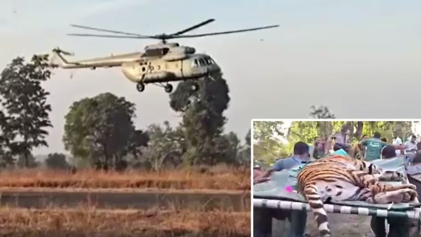 मध्य प्रदेश–राजस्थान। Flight Creates History: देश के वन्यजीव संरक्षण के इतिहास में आज एक नया अध्याय जुड़ गया, जब मध्य प्रदेश के पेंच टाइगर रिजर्व की 3 वर्षीय बाघिन (PN-224) को भारतीय वायुसेना के M-17 हेलीकॉप्टर के जरिए राजस्थान ले जाया गया।