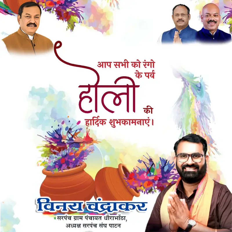 उन्होंने कामना की कि रंगों का यह पावन पर्व सभी के जीवन में सुख, समृद्धि और खुशहाली लेकर आए तथा समाज में आपसी सद्भाव और एकता को और मजबूत करे। विनय चंद्राकर ने सभी से सुरक्षित और सौहार्दपूर्ण वातावरण में होली मनाने की अपील भी की।
