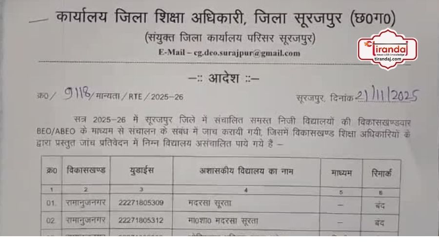 32 निजी स्कूलों की मान्यता खत्म, प्रशासन के इस कदम से स्कूल संचालकों में मचा हड़कंप – Tirandaj | Latest Chhattisgarh News