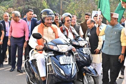 मुख्यमंत्री साय ने हेलमेट पहनकर चलाई स्कूटी