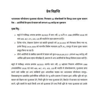माला परियोजना मुआवजा घोटाले का पहला पूरक चार्जशीट दाखिल 24-Jan-2026 3:45…