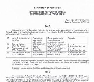 नौ डाक अफसरों के तबादले, दो डाउन ग्रेड किए गए 01-Jan-2026…