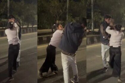 नशे में युवक-युवती का हाईवोल्टेज ड्रामा, सड़क पर थप्पड़