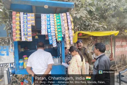 पाटन में कोटपा एक्ट के तहत औचक निरीक्षण, 12 पान ठेला व होटलों पर कार्रवाई, ₹810 का चालान