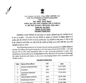 जयपुर के प्रधान आयकर आयुक्त को एमपी सीजी का प्रभार 01-Jan-2026…
