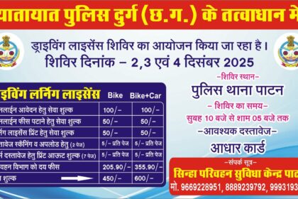 पाटन,,नगर में जिसके पास गाड़ी चलाने का लाइसेंस नहीं है उनके लिए…