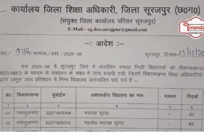 32 निजी स्कूलों की मान्यता खत्म, प्रशासन के इस कदम से स्कूल संचालकों में मचा हड़कंप – Tirandaj | Latest Chhattisgarh News