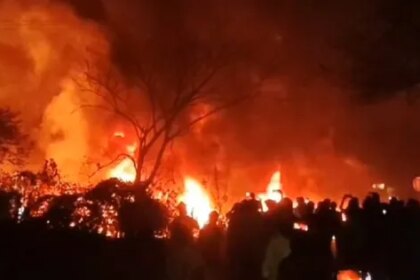 कंटेनर-हाइवा के बीच टक्कर में लगी भीषण आग, खलासी जिंदा जला