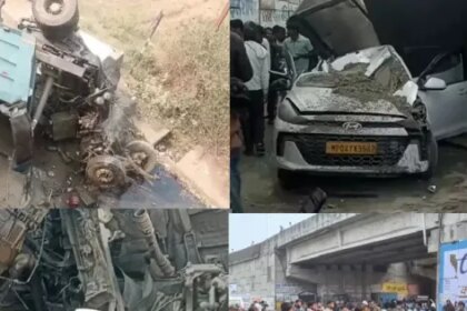 ओवरब्रिज से कार और बाइक पर गिरा हाईवा, दो लोगों की मौत ,पांच घायल
