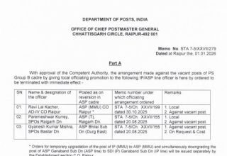 नौ डाक अफसरों के तबादले, दो डाउन ग्रेड किए गए 01-Jan-2026…