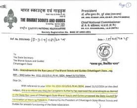 बृजमोहन ने कहा वे 5वर्ष तक अध्यक्ष रहेंगे राज्य स्काउट गाइड छत्तीसगढ़…