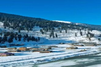 कश्मीर की ऊंची पहाड़ियों में इस मौसम की पहली बर्फबारी और घाटी…
