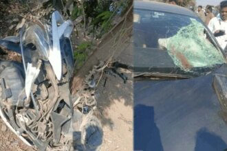 कार ने तेज रफ्तार से दोपहिया वाहन को मारी ठोकर, बच्चे समेत दो ने तोड़ा दम