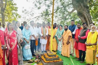 सिरकट्टी धाम में 51, कुण्डीय श्रीरामचरित मानस महायज्ञ हेतु अस्थायी यज्ञशाला का भूमिपूजन और ध्वजारोहण,,