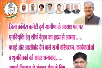 दुर्ग। जिला कांग्रेस कमेटी दुर्ग ग्रामीण के अध्यक्ष पद पर पुनः दायित्व…