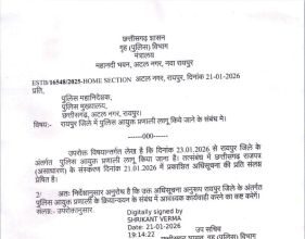 रायपुर में पुलिस कमिश्नरी की अधिसूचना जारी 21-Jan-2026 8:50 PM …